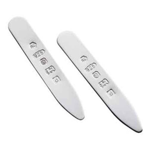 These Sterling Silver Collar Stiffeners are a wonderful gift. A luxurious alternative to the little plastic stiffeners that usually come with a shirt to stop the collar from curling.This is an ideal gift for the man who buys the highest quality shirts and wants to feel the complete executive.The collar stiffeners come in a small black pouch and a luxurious gift box.These stiffeners have a feature hallmark on the one side,but are plain on the other side. They are suitable for engraving.These stiffeners will fit most shirts. If in doubt,please measure your current stiffeners.These Measure Approx 6.3cm x 1cm x 1mm