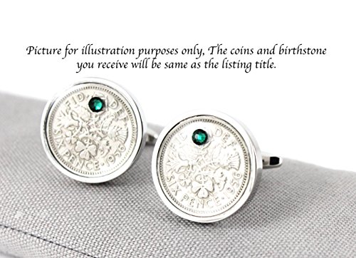 A classic pair of sixpence cufflinks made from genuine sixpence coins, to make it more unique and personal you can personalised it with your choice of genuine Swarovski crystals birthstone, A prefect and lovely gift for anyone who need luck and good fortune as Sixpence is well known for luck, wealth and good health. It truly is a prefect gift for groom or for someone who celebrating there graduation, retirement, birthday or anniversaries etc. The sixpences cleaned and polished before set in a rhodium plated silver cufflinks and the birthstone you choice is set on the top middle in the tails side and right corner in the head side. please kindly having check the photograph which will give you an idea of how they look with the crystals in. The Swarovski birthstone are very secure subject to proper handling. Each cufflinks sealed under jewellers grade glass-like glaze for long lasting wear and Cufflinks are presented in a presentation box. please kindly message us which side of the sixpence you want to be facing, can be Heads/Tails (Only Tails show the year) or Tails/Tails (which both show the year). If no message received, we will process both of them tails side facing. Please note that the cufflinks is only splash proof but not waterproof, so please do not submerse in water and each set of cufflinks is carefully handmade to order and due to the personalisation they non-returnable. Item is Handmade by us in our workshop. This cufflinks is comes complete with a personalised gift card and gift box.